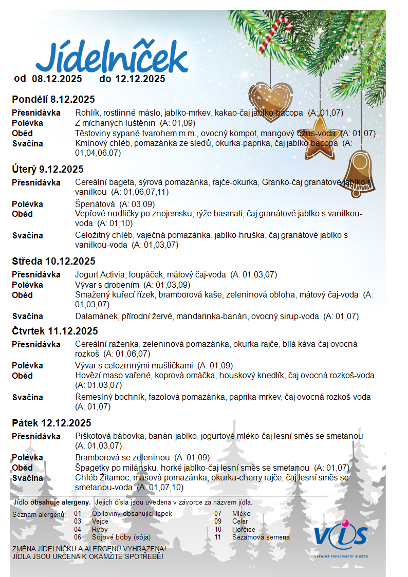 • VÁNOČNÍ PRÁZDNINY 2025/2026