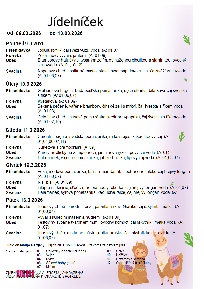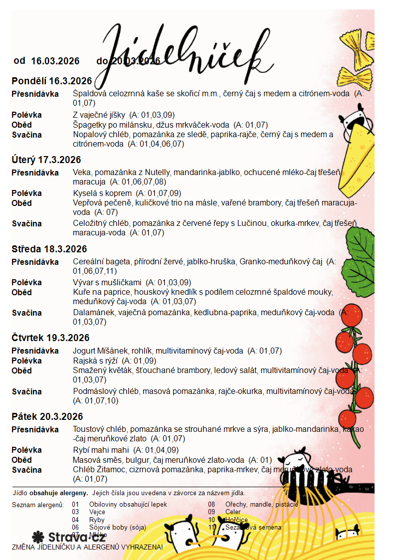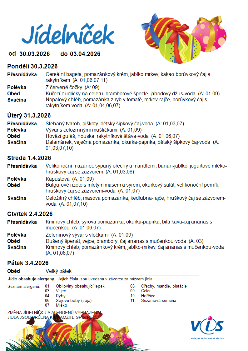 • Jídelníček