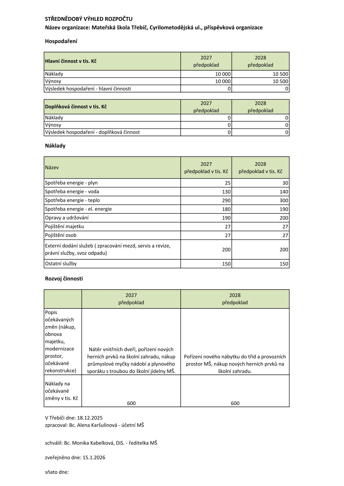 Střednědobý výhled rozpočtu na rok 2027 a 2028